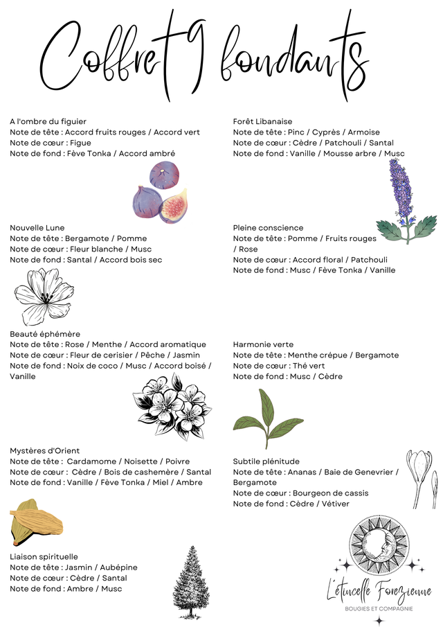 Pour les fondants twist : cire de colza 100% naturelle sans OGM ni pesticides (Européenne) / parfum de Grasse garanti sans substances cancérigènes, mutagènes ni reprotoxiques.